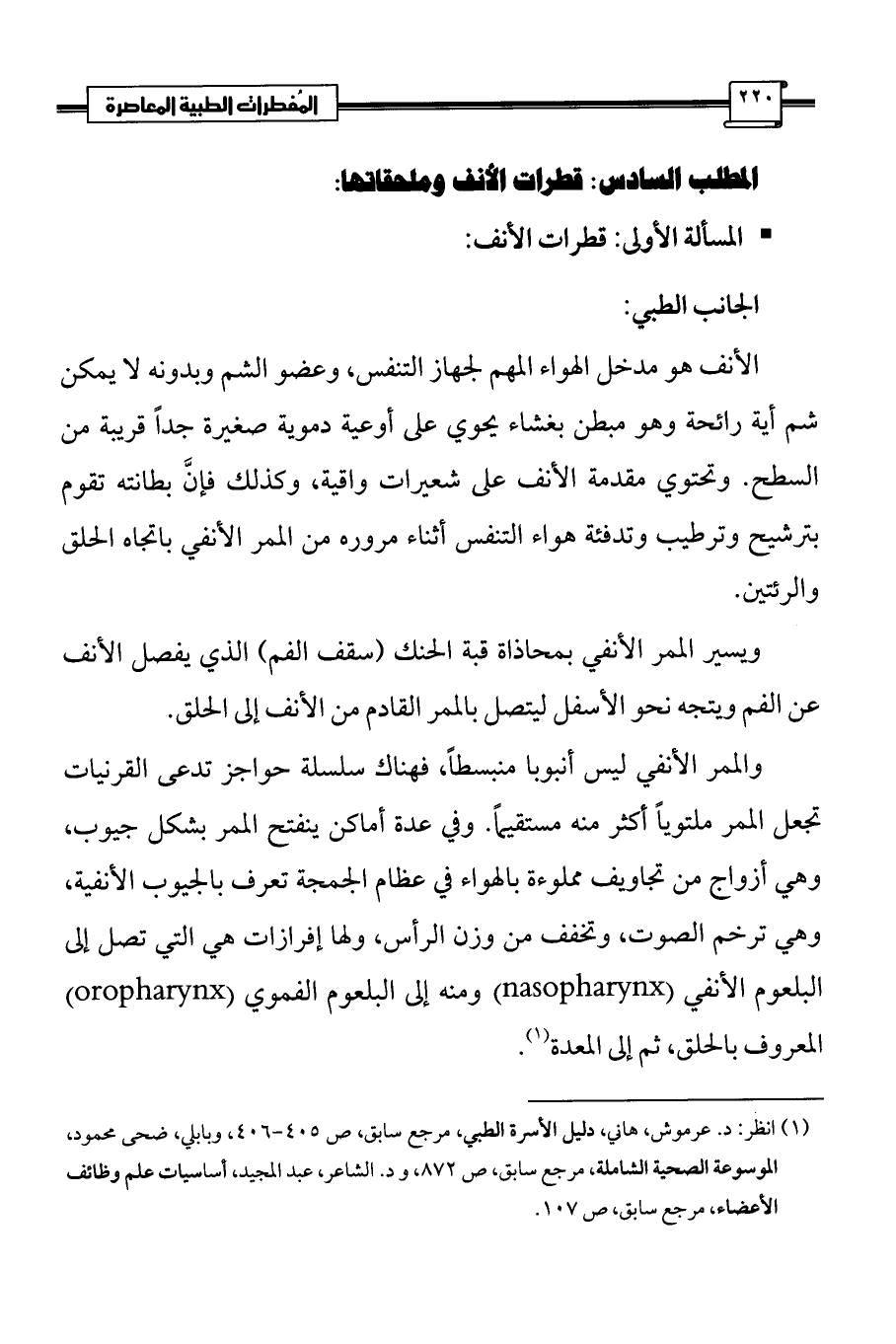 (¬1) انظر: د. عرموش، هاني، دليل الأسرة الطبي، مرجع سابق، ص 405 - 406، وبابلي، ضحى محمود، الموسوعة الصحية الشاملة، مرجع سابق، ص 872، ود. الشاعر، عبد المجيد، أساسيات علم وظائف الأعضاء، مرجع سابق، ص 107.