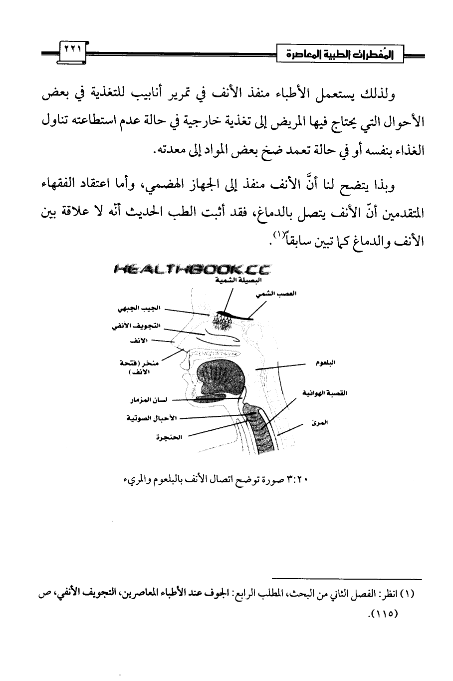 (¬1) انظر: الفصل الثاني من البحث، المطلب الرابع: الجوف عند الأطباء المعاصرين، التجويف الأنفي، ص (115).
