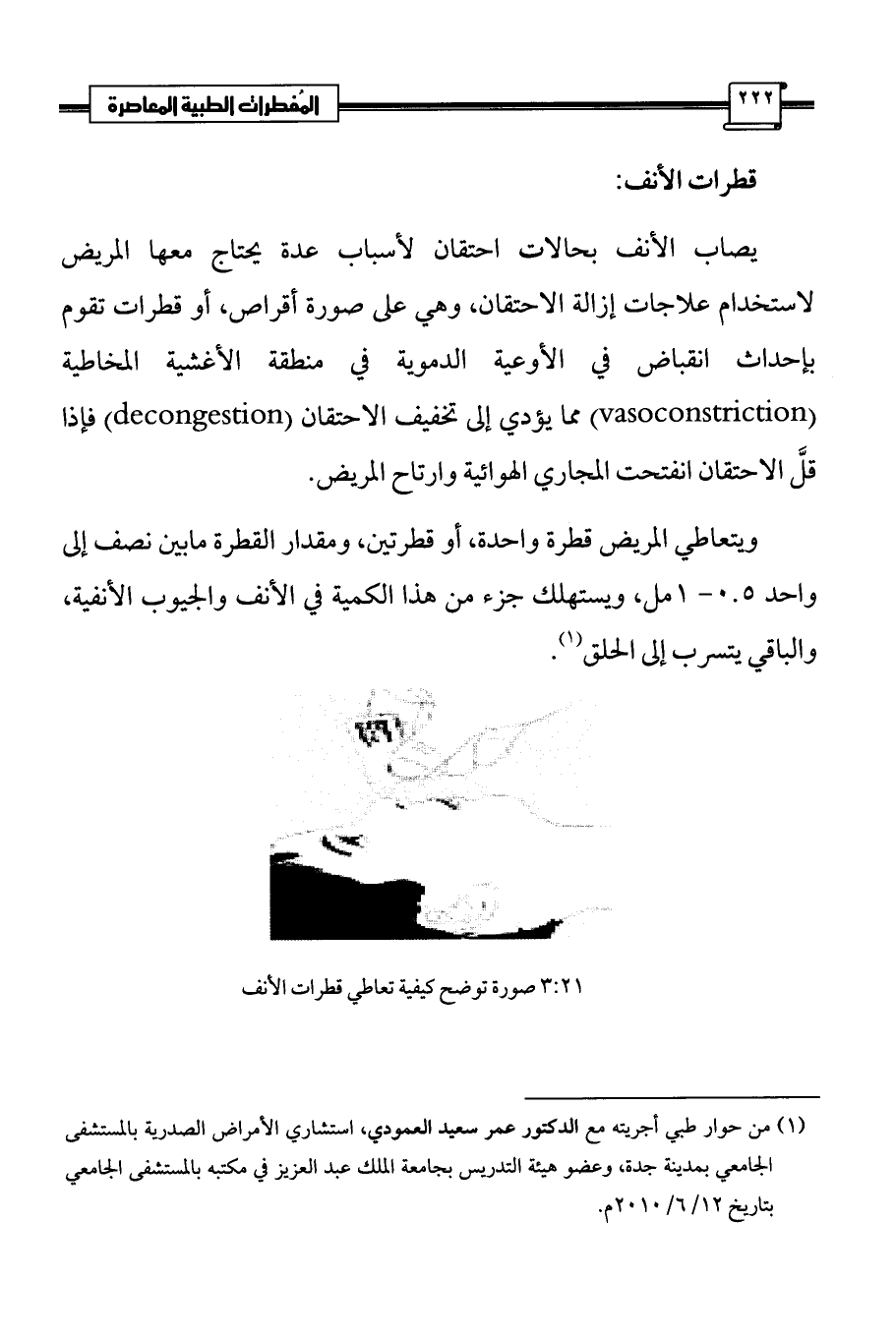 (¬1) من حوار طبي أجريته مع الدكتور عمر سعيد العمودي، استشاري الأمراض الصدرية بالمستشفى الجامعي بمدينة جدة، وعضو هيئة التدريس بجامعة الملك عبد العزيز في مكتبه بالمستشفى الجامعي بتاريخ 12/ 6/2010 م.