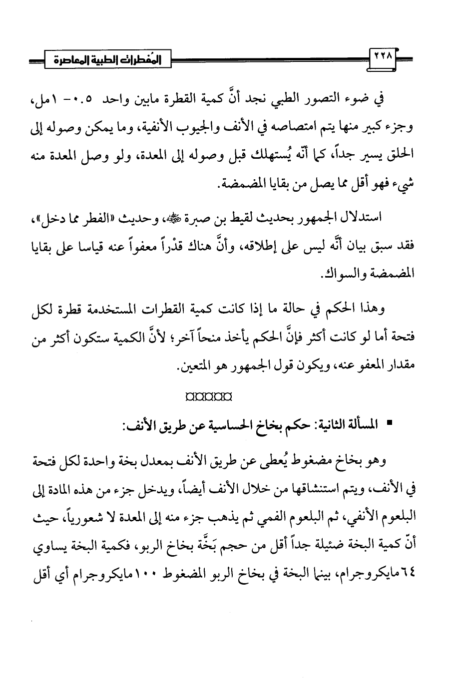 • المسألة الثانية: حكم بخاخ الحساسية عن طريق الأنف: