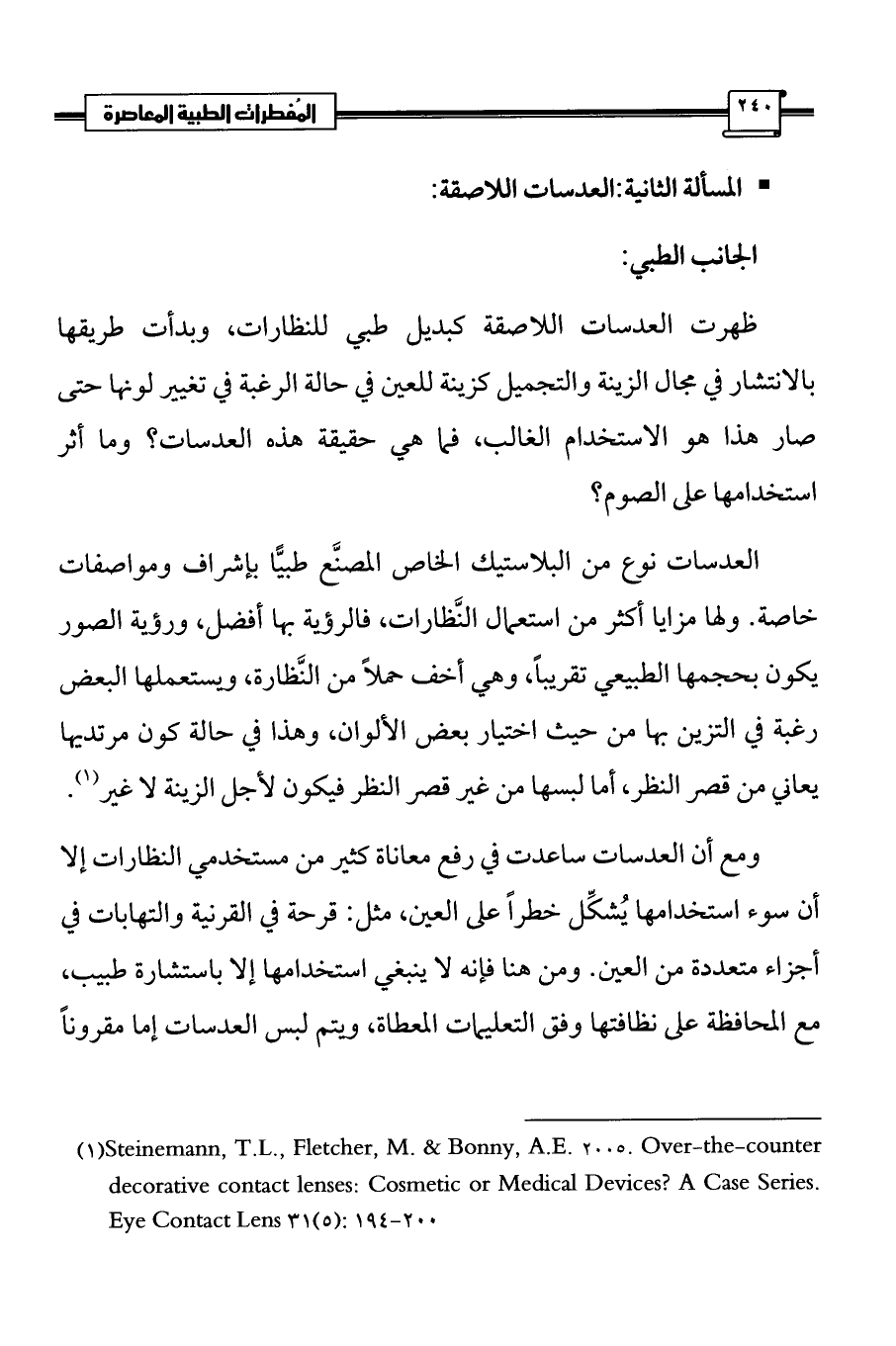 (¬1) Steinemann, T.L., Fletcher, M. & Bonny, A.E. 2005. Over-the-counter decorative contact lenses: Cosmetic or Medical Devices? A Case Series. Eye Contact Lens 31(5): 194 - 200