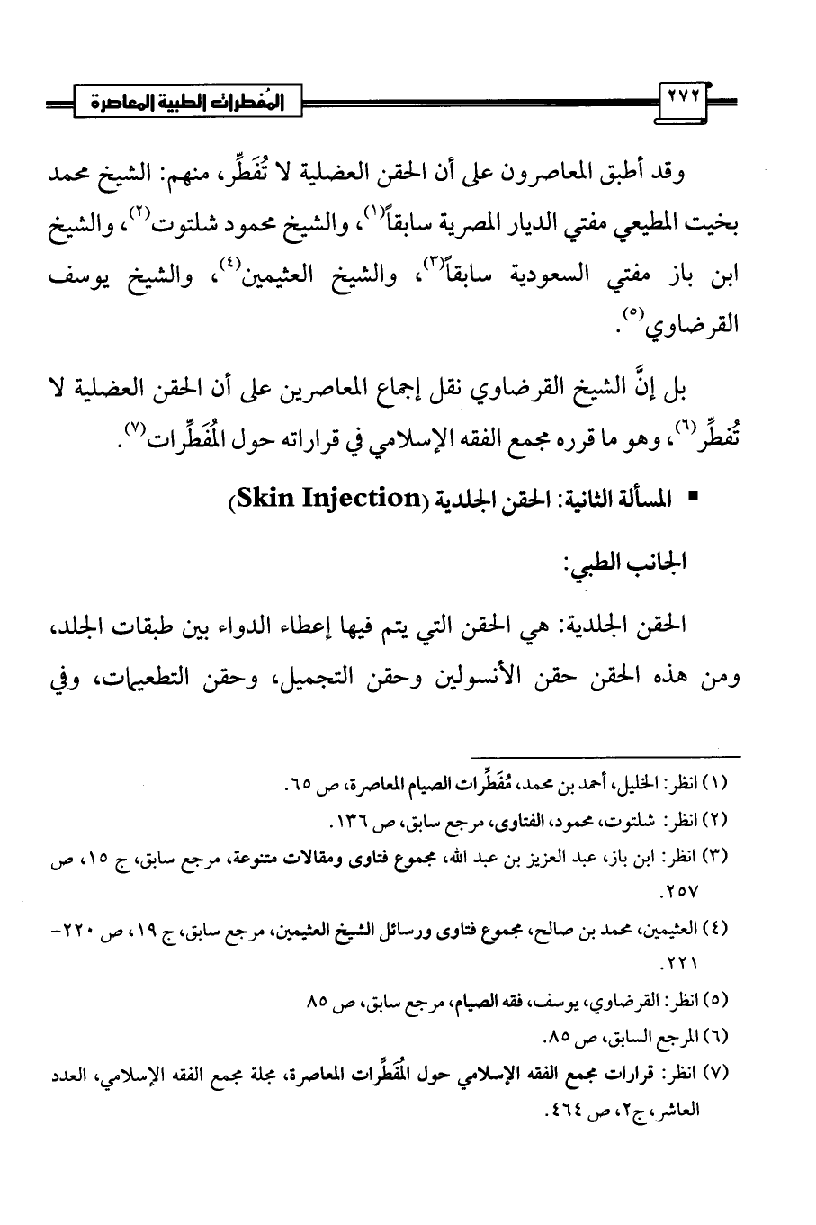 (¬7) انظر: قرارات مجمع الفقه الإسلامي حول المُفَطِّرات المعاصرة، مجلة مجمع الفقه الإسلامي، العدد العاشر، ج 2، ص 464.