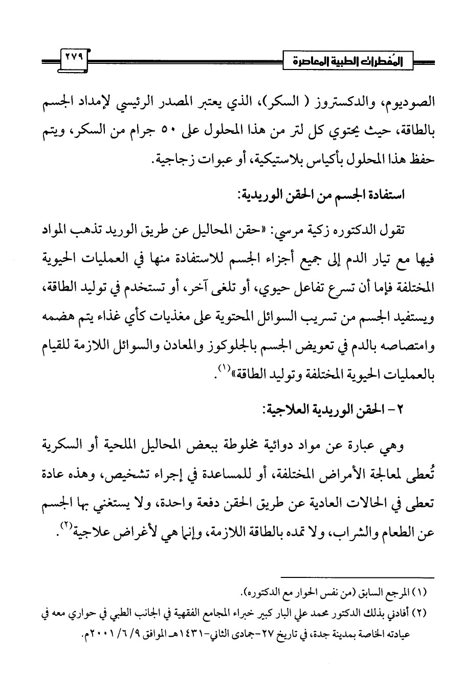 (¬2) أفادني بذلك الدكتور محمد علي البار كبير خبراء المجامع الفقهية في الجانب الطبي في حواري معه في عيادته الخاصة بمدينة جدة، في تاريخ 27 - جمادى الثاني-1431 هـ الموافق 9/ 6/2001 م.