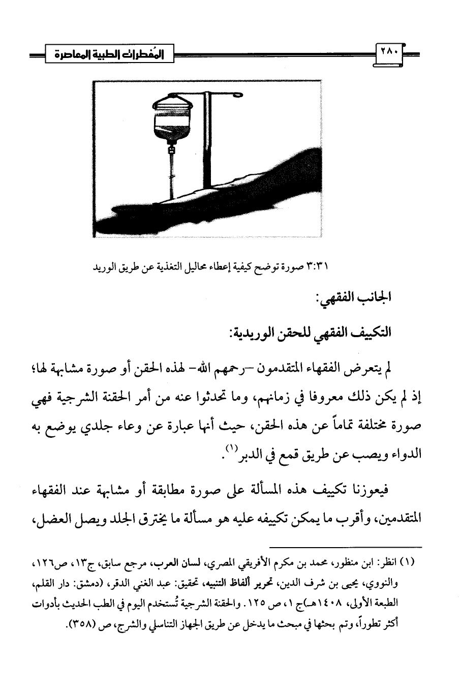 (¬1) انظر: ابن منظور، محمد بن مكرم الأفريقي المصري، لسان العرب، مرجع سابق، ج 13، ص 126، والنووي، يحيى بن شرف الدين، تحرير ألفاظ التنبيه، تحقيق: عبد الغني الدقر، (دمشق: دار القلم، الطبعة الأولى، 1408 هـ) ج 1، ص 125. والحقنة الشرجية تُستخدم اليوم في الطب الحديث بأدوات أكثر تطوراً، وتم بحثها في مبحث ما يدخل عن طريق الجهاز التناسلي والشرج، ص (358).