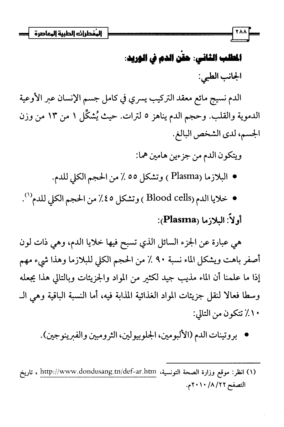 (¬1) انظر: موقع وزارة الصحة التونسية، http://www.dondusang.tn/def-ar.htm ، تاريخ التصفح 22/ 8/2010 م.