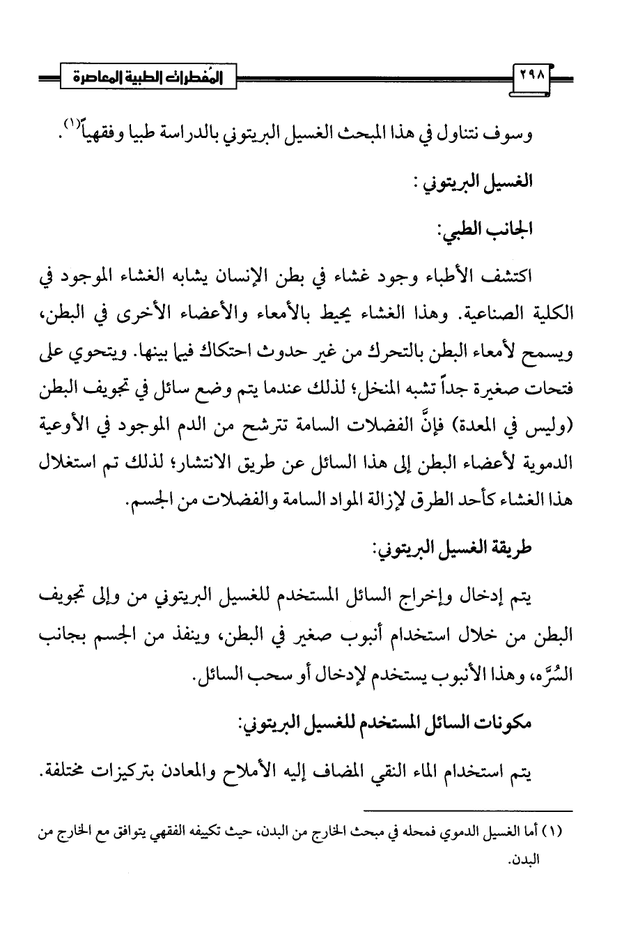وسوف نتناول في هذا المبحث الغسيل البريتوني بالدراسة طبيا وفقهياً (¬1).