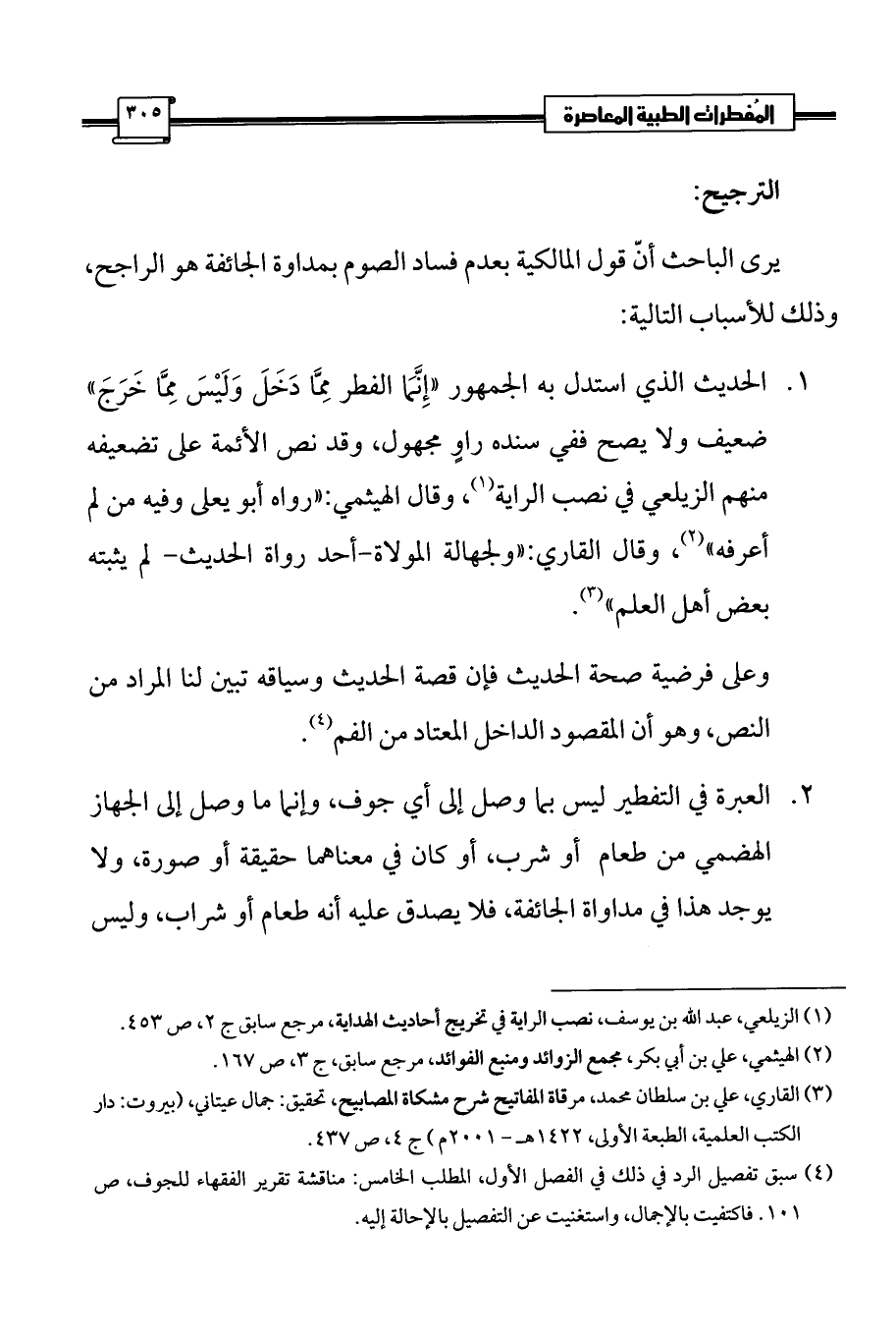 (¬4) سبق تفصيل الرد في ذلك في الفصل الأول، المطلب الخامس: مناقشة تقرير الفقهاء للجوف، ص 101. فاكتفيت بالإجمال، واستغنيت عن التفصيل بالإحالة إليه.