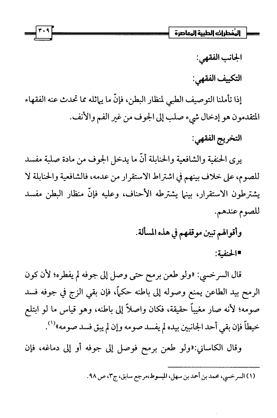 (¬1) السرخسي، محمد بن أحمد بن سهل، المبسوط، مرجع سابق، ج 3، ص 98.