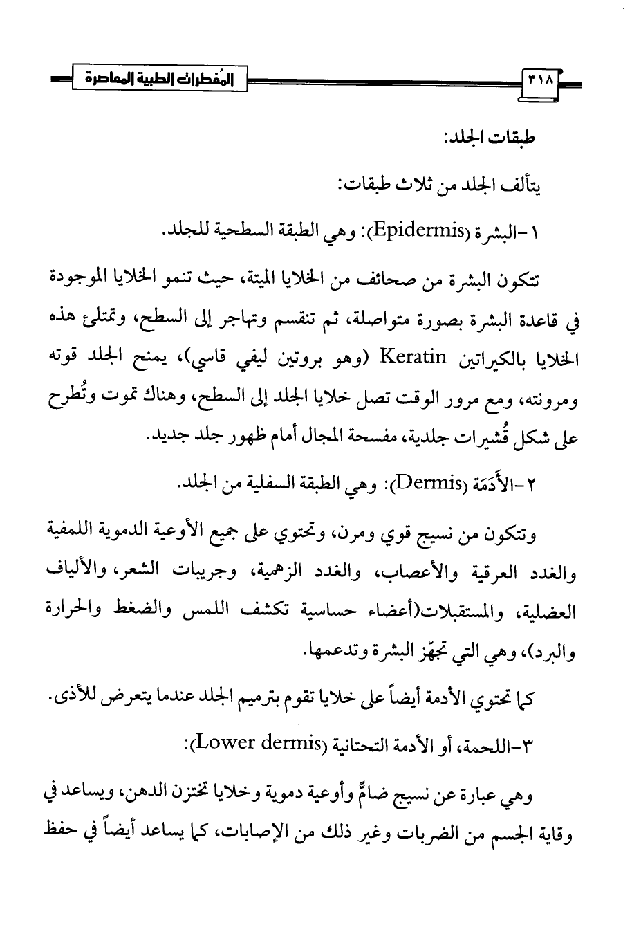 1 - البشرة (Epidermis): وهي الطبقة السطحية للجلد.