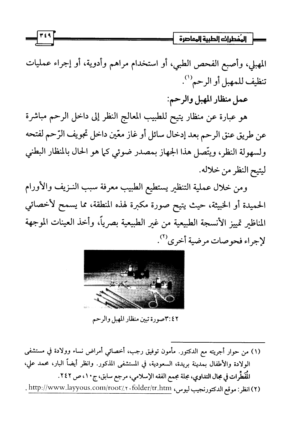 (¬1) من حوار أجريته مع الدكتور. مأمون توفيق رجب، أخصائي أمراض نساء وولادة في مستشفى الولادة والأطفال بمدينة بريدة، السعودية، في المستشفى المذكور. وانظر أيضاً البار، محمد علي، المُفَطِّرات في مجال التداوي، مجلة مجمع الفقه الإسلامي، مرجع سابق، ج 10، ص 242.