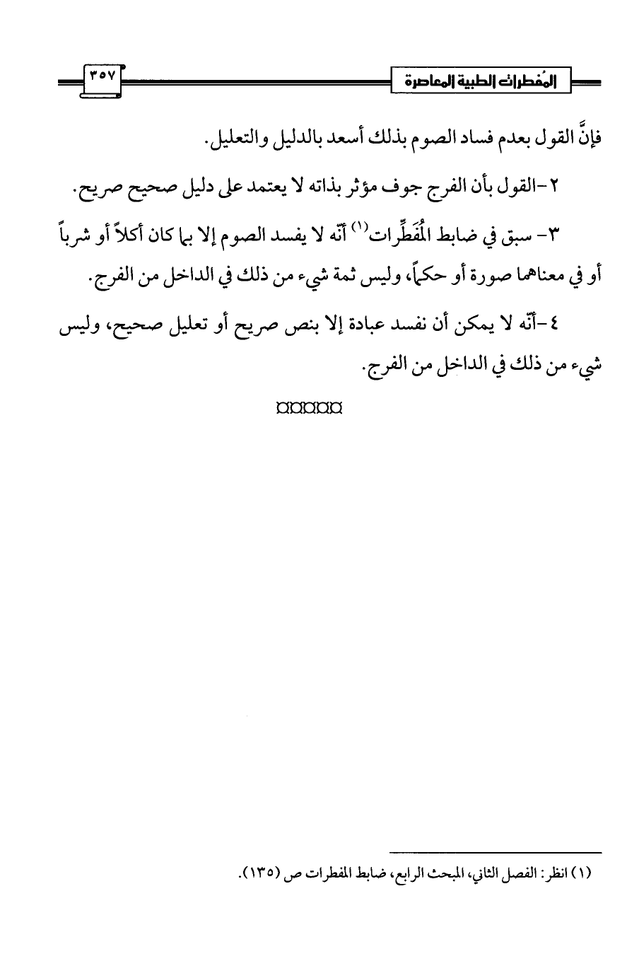 (¬1) انظر: الفصل الثاني، المبحث الرابع، ضابط المفطرات ص (135).