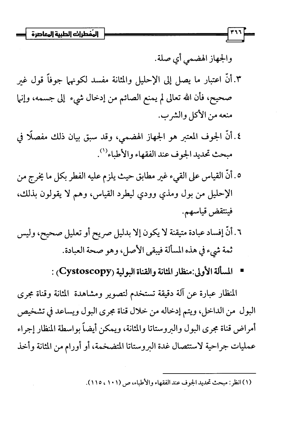 • المسألة الأولى: منظار المثانة والقناة البولية (Cystoscopy) :