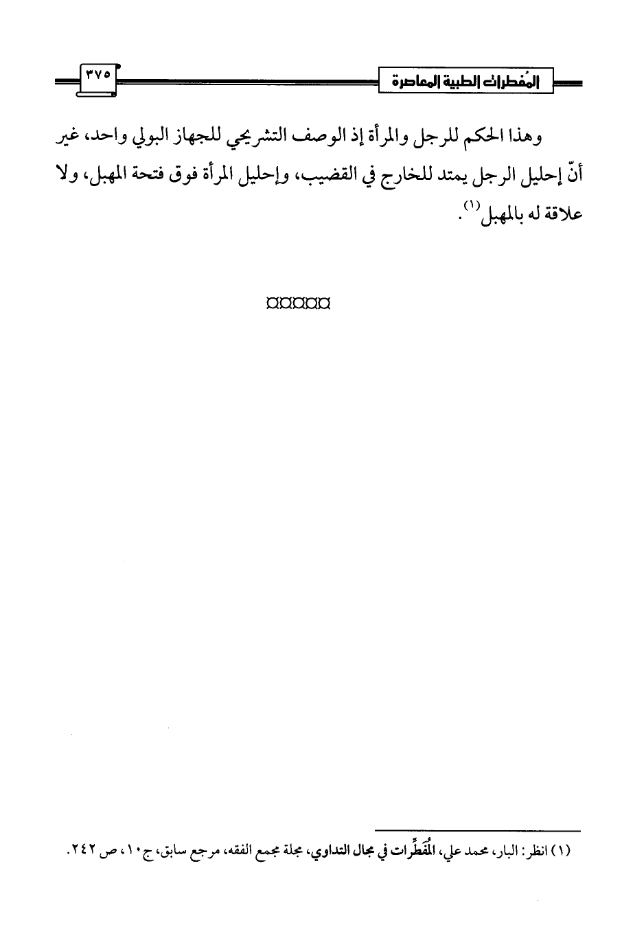 (¬1) انظر: البار، محمد علي، المُفَطِّرات في مجال التداوي، مجلة مجمع الفقه، مرجع سابق، ج 10، ص 242.