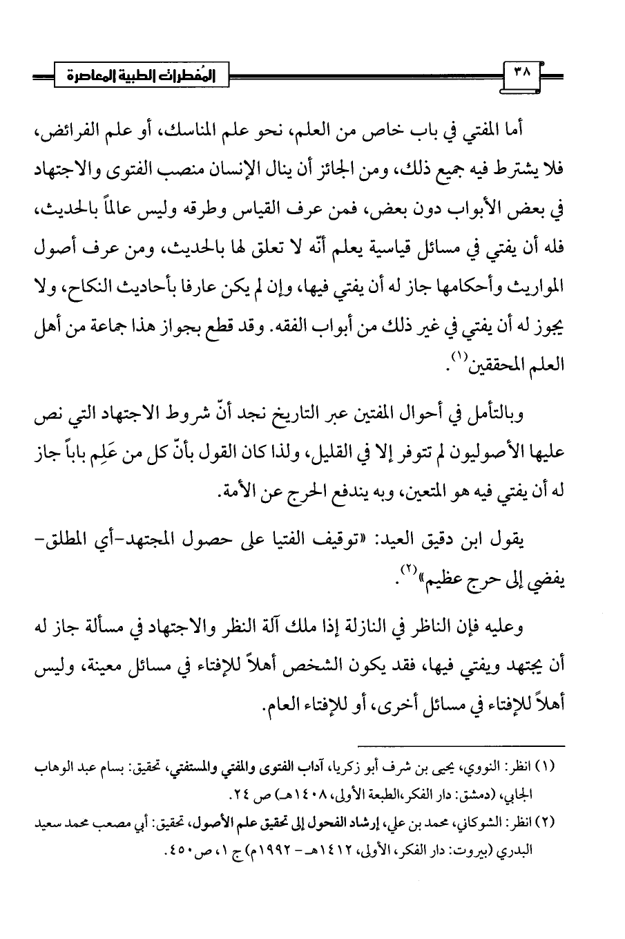 (¬1) انظر: النووي، يحيى بن شرف أبو زكريا، آداب الفتوى والمفتي والمستفتي، تحقيق: بسام عبد الوهاب الجابي، (دمشق: دار الفكر، الطبعة الأولى، 1408 هـ) ص 24.