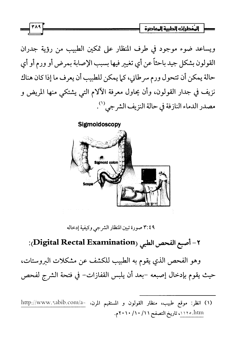 (¬1) انظر: موقع طبيب، منظار القولون والمستقيم المرن، http://www.6 abib.com/a-1125.htm، تاريخ التصفح 11/ 10/2010 م.