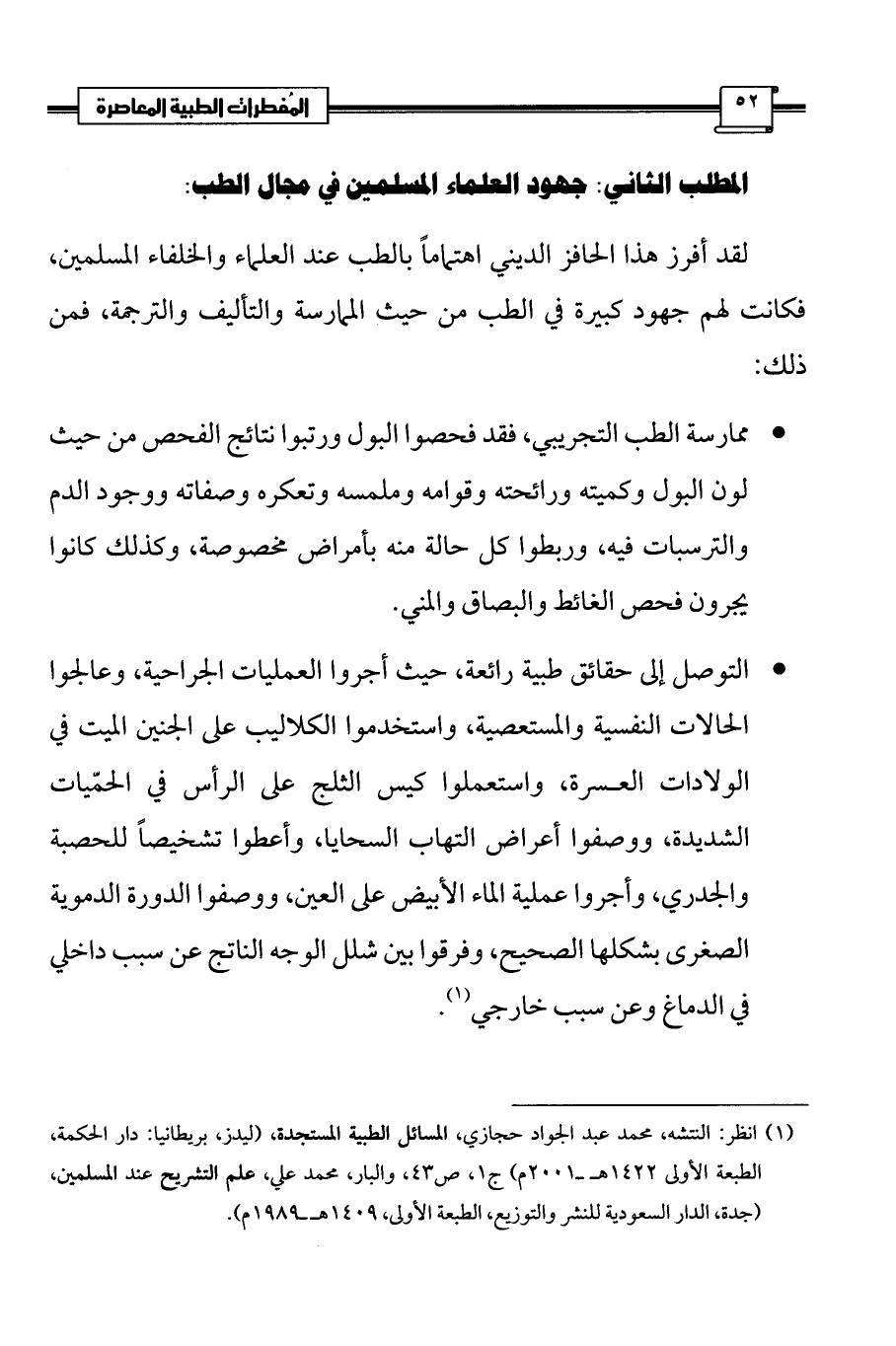 (¬1) انظر: النتشه، محمد عبد الجواد حجازي، المسائل الطبية المستجدة، (ليدز، بريطانيا: دار الحكمة، الطبعة الأولى 1422 هـ ـ 2001 م) ج 1، ص 43، والبار، محمد علي، علم التشريح عند المسلمين، (جدة، الدار السعودية للنشر والتوزيع، الطبعة الأولى، 1409 هـ ـ 1989 م).