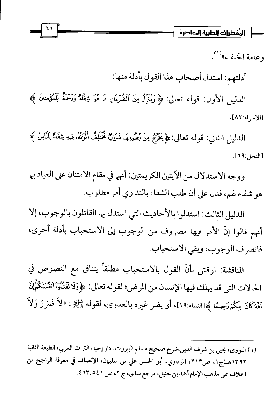 (¬1) النووي، يحيى بن شرف الدين، شرح صحيح مسلم (بيروت: دار إحياء التراث العربي، الطبعة الثانية 1392 هـ) ج 1، ص 213، المرداوي، أبو الحسن علي بن سليمان، الإنصاف في معرفة الراجح من الخلاف على مذهب الإمام أحمد بن حنبل، مرجع سابق، ج 2، ص 463.541.
