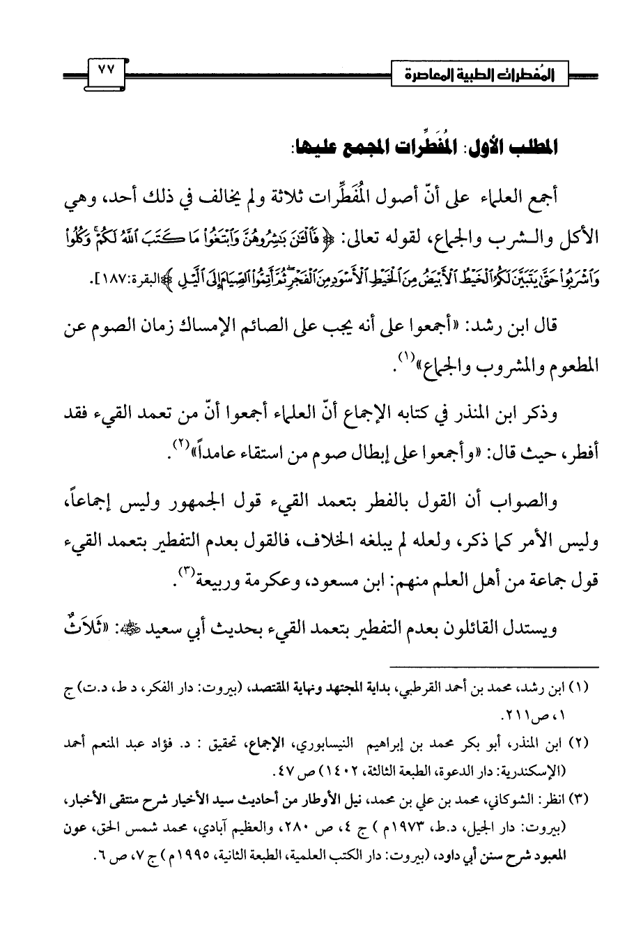 (¬2) ابن المنذر، أبو بكر محمد بن إبراهيم النيسابوري، الإجماع، تحقيق: د. فؤاد عبد المنعم أحمد (الإسكندرية: دار الدعوة، الطبعة الثالثة، 1402) ص 47.