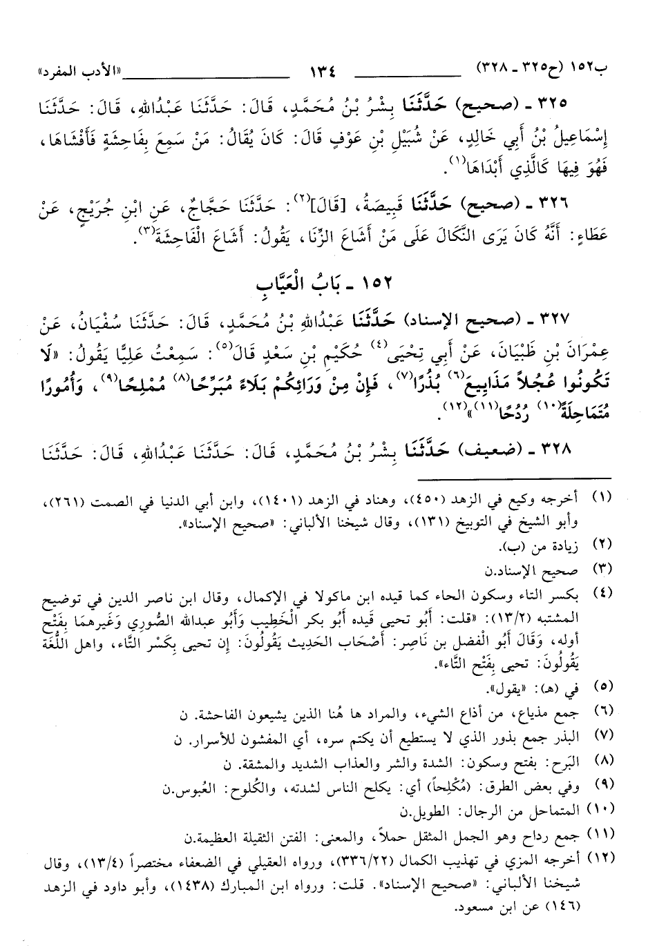325 - حَدَّثَنَا بِشْرُ بْنُ مُحَمَّدٍ، قَالَ: حَدَّثَنَا عَبْدُ اللهِ، قَالَ: حَدَّثَنَا إِسْمَاعِيلُ بْنُ أَبِي خَالِدٍ، عَنْ شُبَيْلِ بْنِ عَوْفٍ, قَالَ: كَانَ يُقَالُ: مَنْ سَمِعَ بِفَاحِشَةٍ فَأَفْشَاهَا، فَهُوَ فِيهَا كَالَّذِي أَبْدَاهَا.