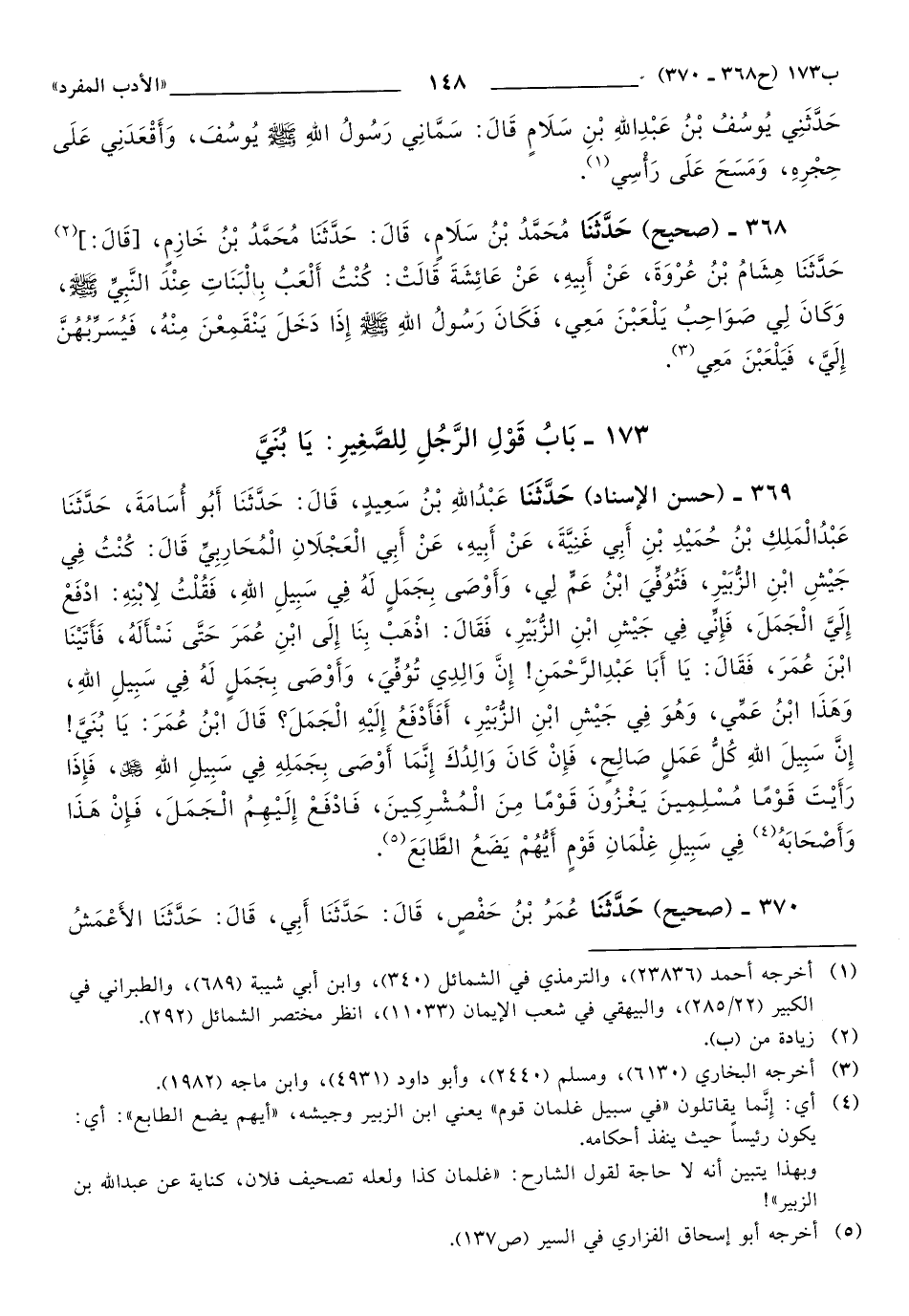 173 - بَابُ قَوْلِ الرَّجُلِ لِلصَّغِيرِ: يَا بُنَيَّ