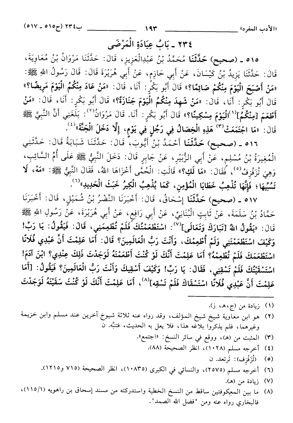 234 - باب عِيَادَةُ الْمَرْضَى