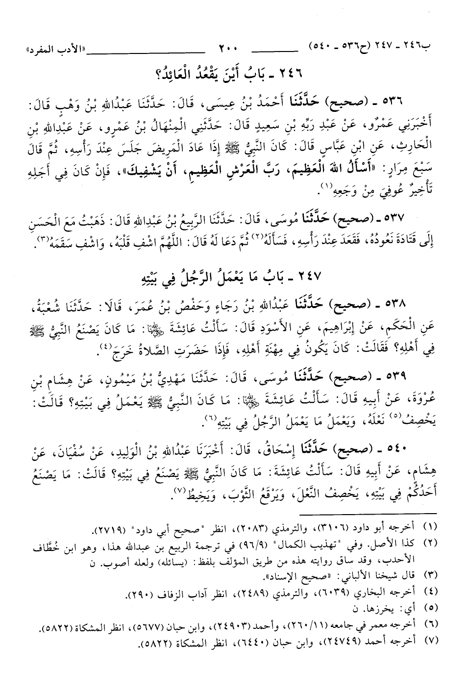 246 - بَابُ أَيْنَ يَقْعُدُ الْعَائِدُ؟