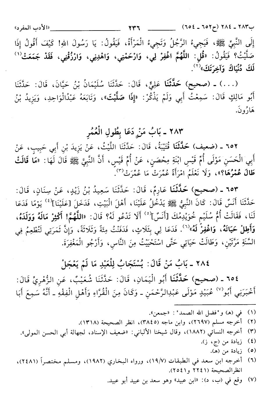 283 - بَابُ مَنْ دَعَا بِطُولِ الْعُمُرِ