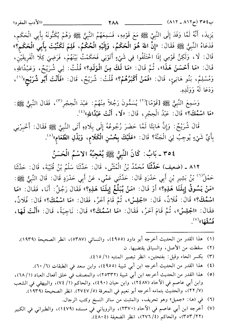 354 - بَابُ: كَانَ النَّبِيُّ صَلَّى اللهُ عَلَيهِ وَسَلَّمَ يُعْجِبُهُ الاسْمُ الْحَسَنُ