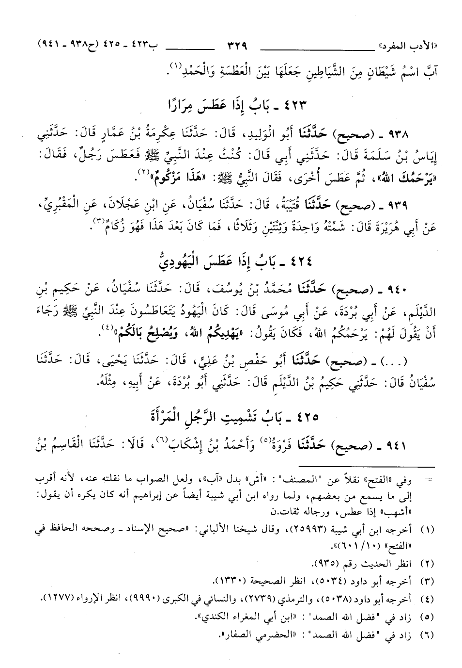 425 - بَابُ تَشْمِيتِ الرَّجُلِ الْمَرْأَةَ