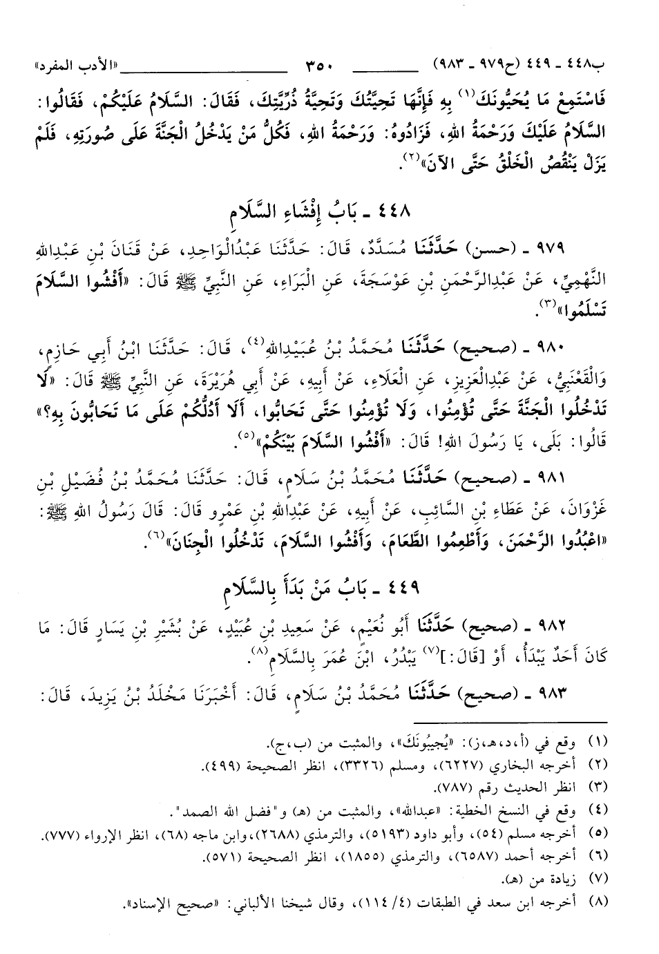 448 - بَابُ إِفْشَاءِ السَّلامِ