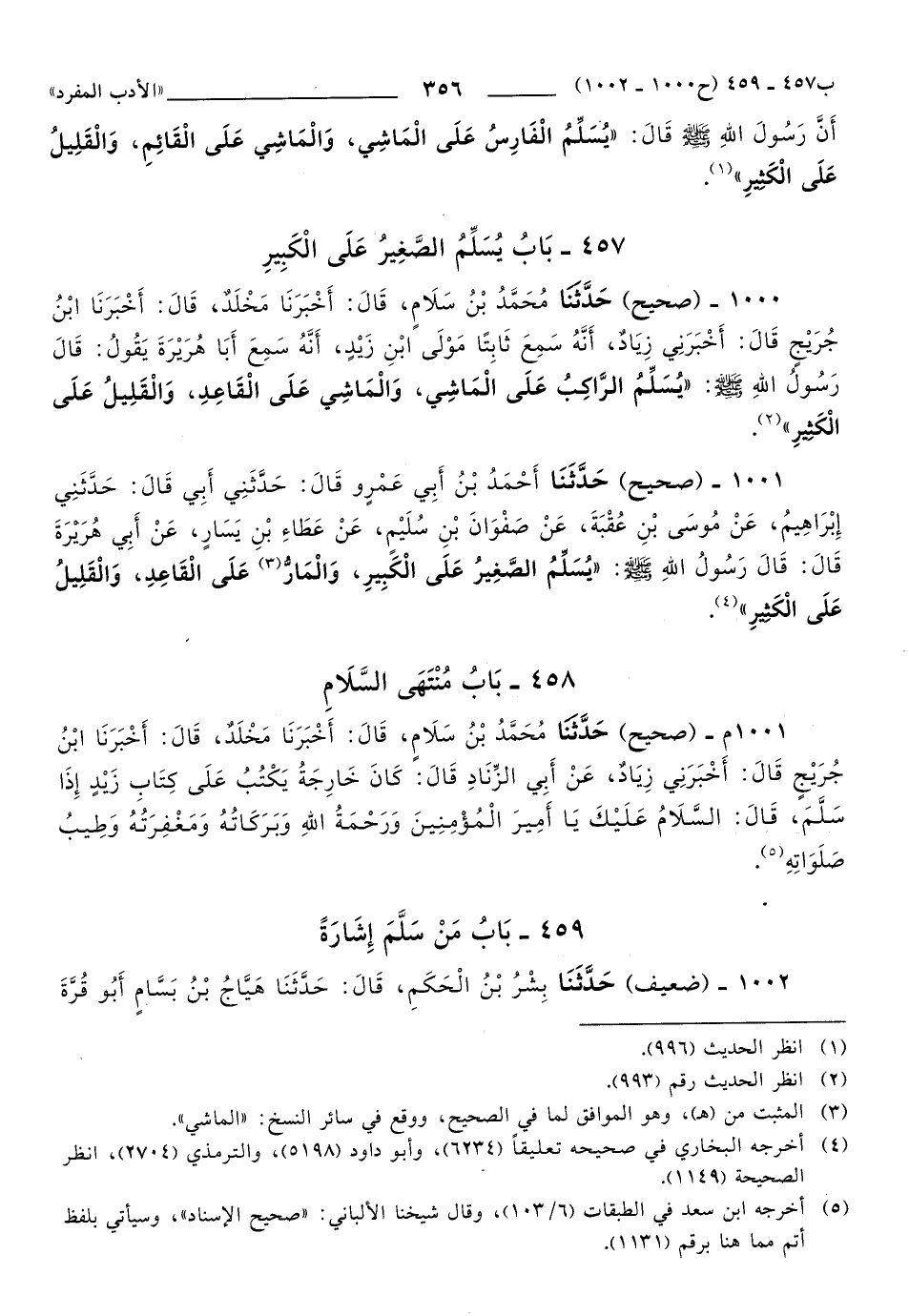 1000 - حَدَّثَنَا مُحَمَّدُ بْنُ سَلاَمٍ، قَالَ: أَخْبَرَنَا مَخْلَدٌ، قَالَ: أَخْبَرَنَا ابْنُ جُرَيْجٍ, قَالَ: أَخْبَرَنِي زِيَادٌ، أَنَّهُ سَمِعَ ثَابِتًا, مَوْلَى ابْنِ زَيْدٍ، أَنَّهُ سَمِعَ أَبَا هُرَيْرَةَ يَقُولُ: قَالَ رَسُولُ اللهِ صَلَّى اللهُ عَلَيهِ وَسَلَّمَ: يُسَلِّمُ الرَّاكِبُ عَلَى الْمَاشِي، وَالْمَاشِي عَلَى الْقَاعِدِ، وَالْقَلِيلُ عَلَى الْكَثِيرِ.