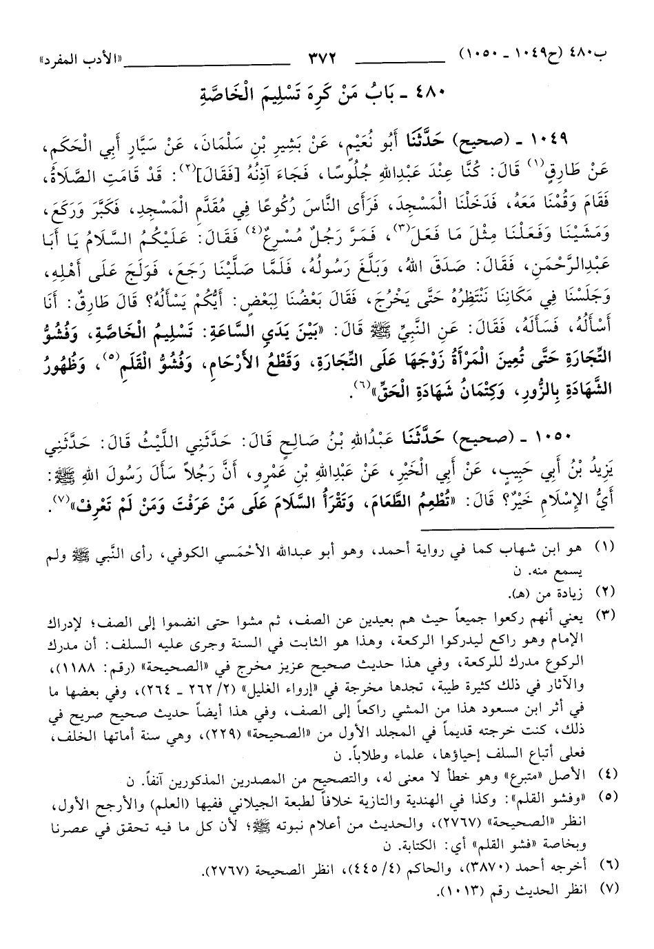 480 - بَابُ مَنْ كَرِهَ تَسْلِيمَ الْخَاصَّةِ