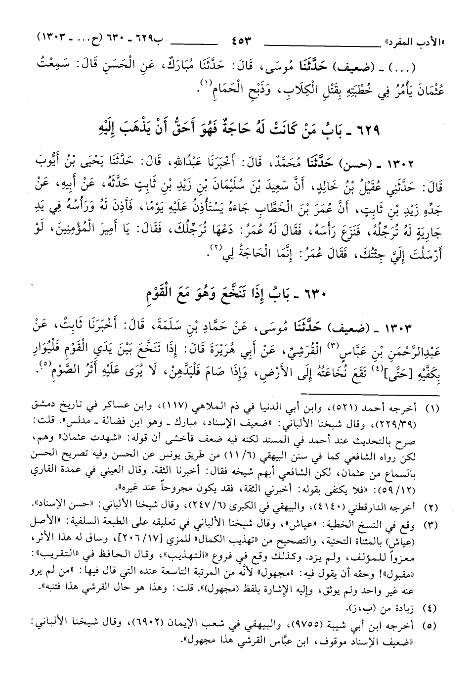 1302 - حَدَّثَنَا مُحَمَّدٌ، قَالَ: أَخْبَرَنَا عَبْدُ اللهِ، قَالَ: حَدَّثَنَا يَحْيَى بْنُ أَيُّوبَ, قَالَ: حَدَّثَنِي عُقَيْلُ بْنُ خَالِدٍ، أَنَّ سَعِيدَ بْنَ سُلَيْمَانَ بْنِ زَيْدِ بْنِ ثَابِتٍ حَدَّثَهُ، عَنْ أَبِيهِ، عَنْ جَدِّهِ زَيْدِ بْنِ ثَابِتٍ، أَنَّ عُمَرَ بْنَ الْخَطَّابِ جَاءَهُ يَسْتَأْذِنُ عَلَيْهِ يَوْمًا، فَأَذِنَ لَهُ, وَرَأْسُهُ فِي يَدِ جَارِيَةٍ لَهُ تُرَجِّلُهُ، فَنَزَعَ رَأْسَهُ، فَقَالَ لَهُ عُمَرُ: دَعْهَا تُرَجِّلُكَ، فَقَالَ: يَا أَمِيرَ الْمُؤْمِنِينَ، لَوْ أَرْسَلْتَ إِلَيَّ جِئْتُكَ، فَقَالَ عُمَرُ: إِنَّمَا الْحَاجَةُ لِي.