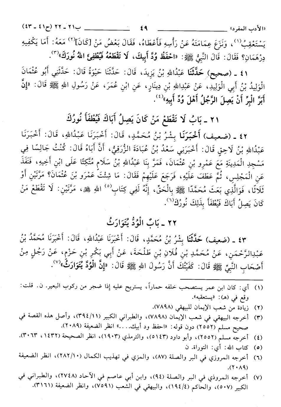 21 - بَابُ لاَ تَقْطَعْ مَنْ كَانَ يَصِلُ أَبَاكَ فَيُطْفَأَ نُورُكَ