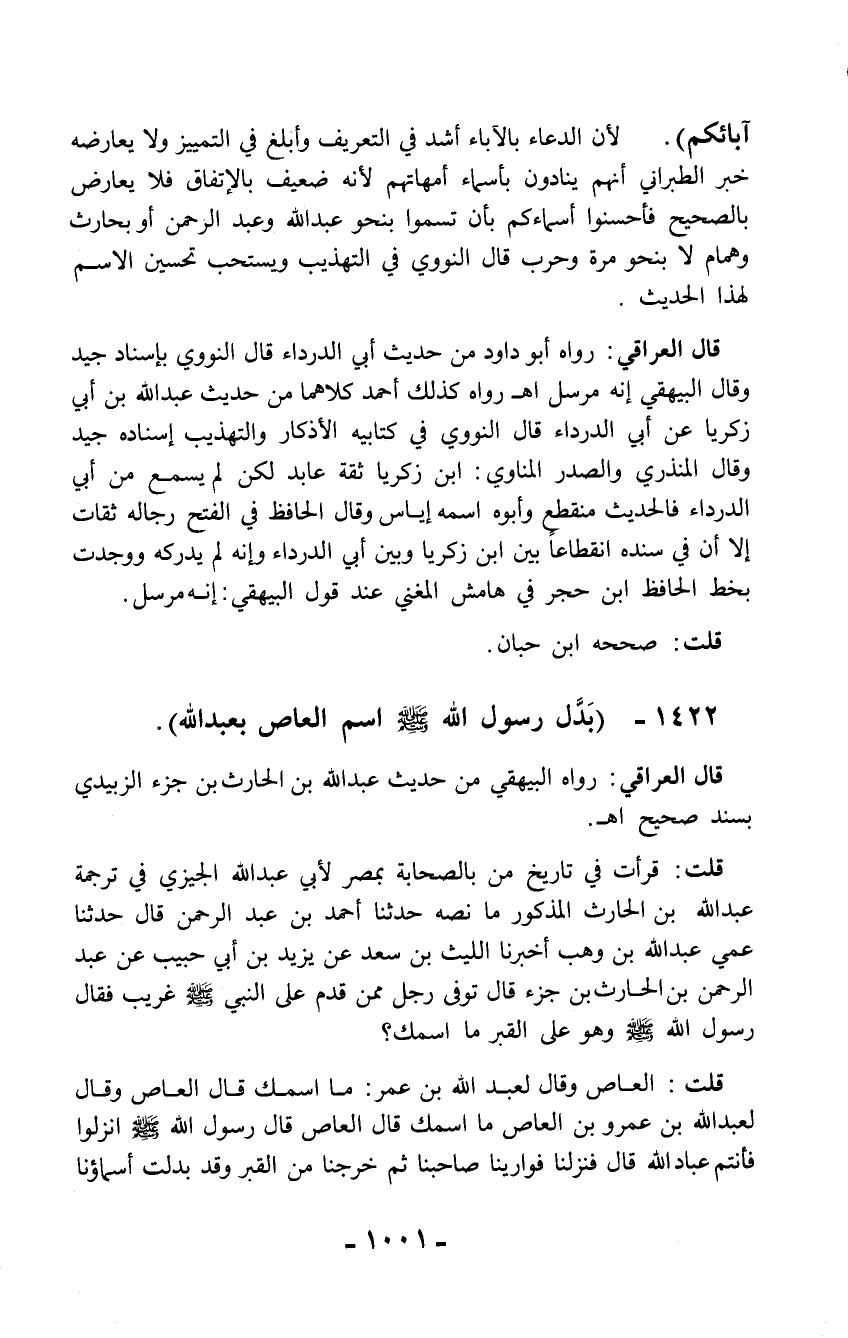 1422 - (بَدَّل رسول الله - صلّى الله عليه وسلم - اسم العاص بعبد الله).