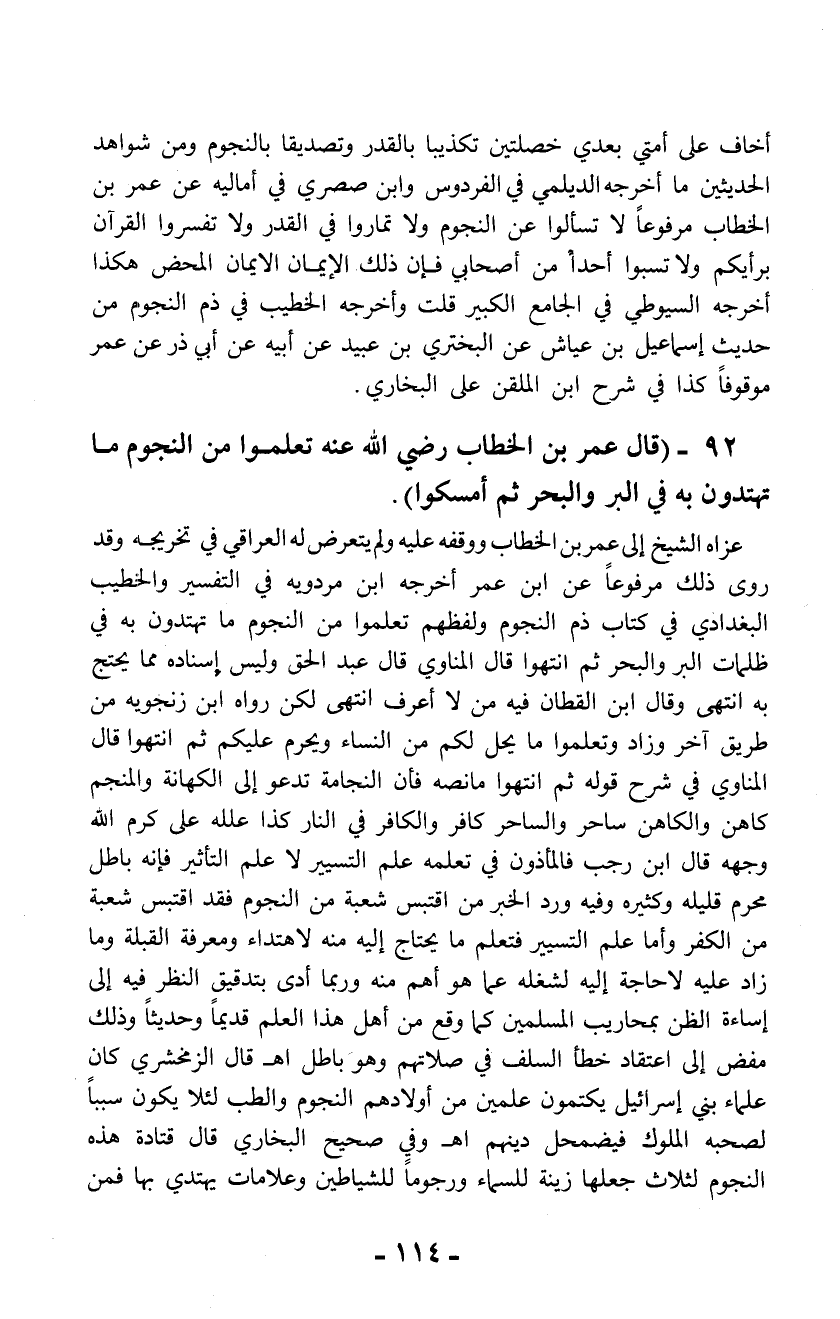 92 - (قال عمر بن الخطاب رضي الله عنه تعلموا من النجوم ما تهتدون به في البر والبحر ثم أمسكوا).