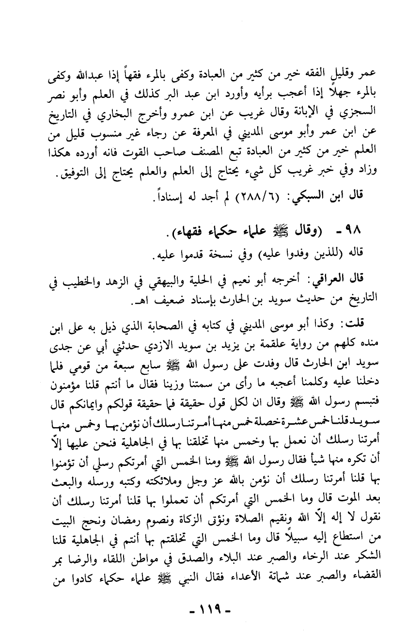 98 - (وقال - صلى الله عليه وسلم - علماء حكماء فقهاء).