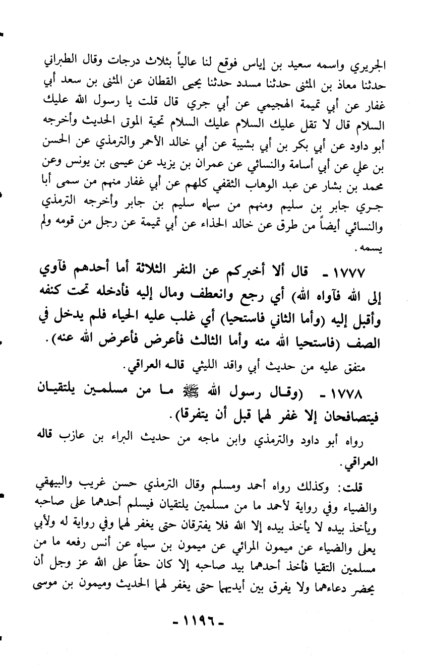 1778 - (وقال رسول الله - صلّى الله عليه وسلم - ما من مسلمين يلتقيان فيتصافحان إلا غفر لهما قبل أن يتفرقا).