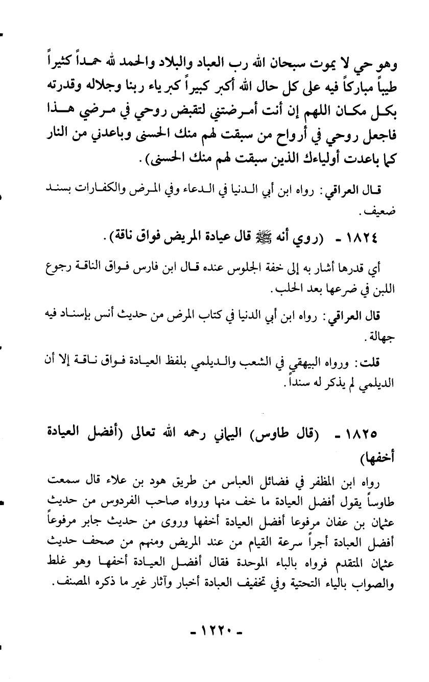 1825 - (قال طاوس) اليماني رحمه الله تعالى (أفضل العيادة أخفها)