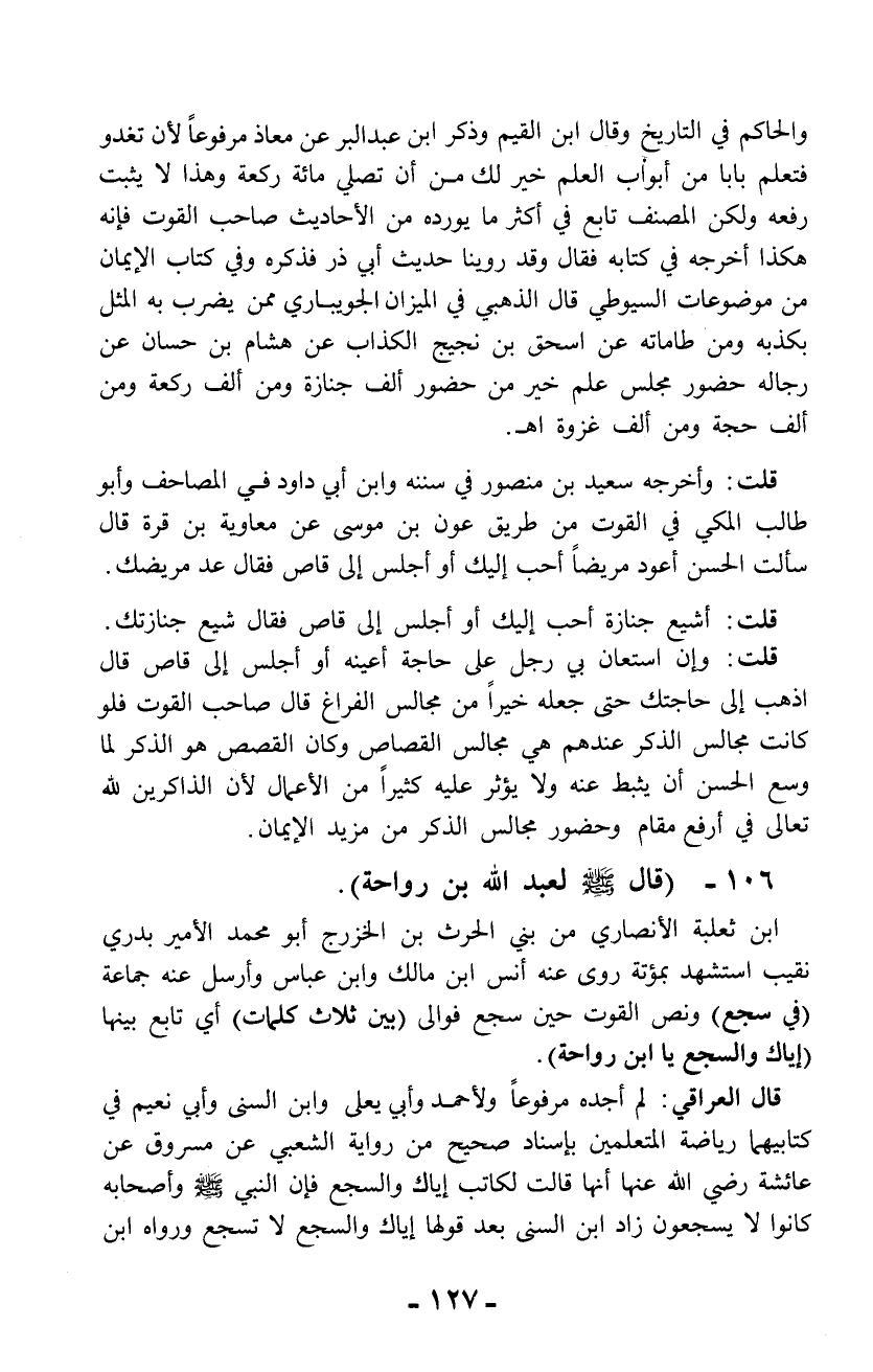 106 - (قال - صلى الله عليه وسلم - لعبد الله بن رواحة).