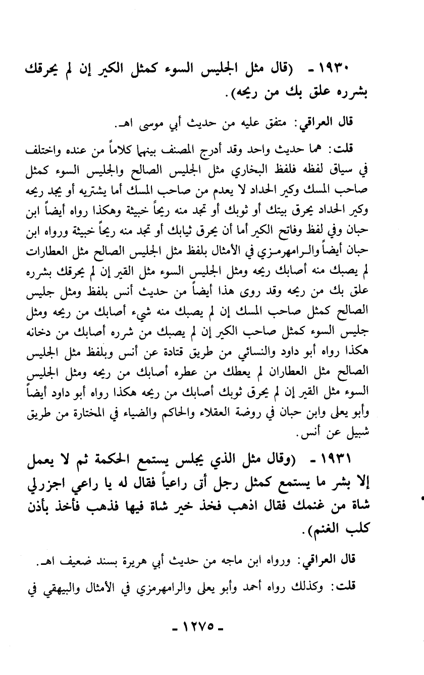 1930 - (قال مثل الجليس السوء كمثل الكير إن لم يحرقك بشرره علق بك من ريحه).
