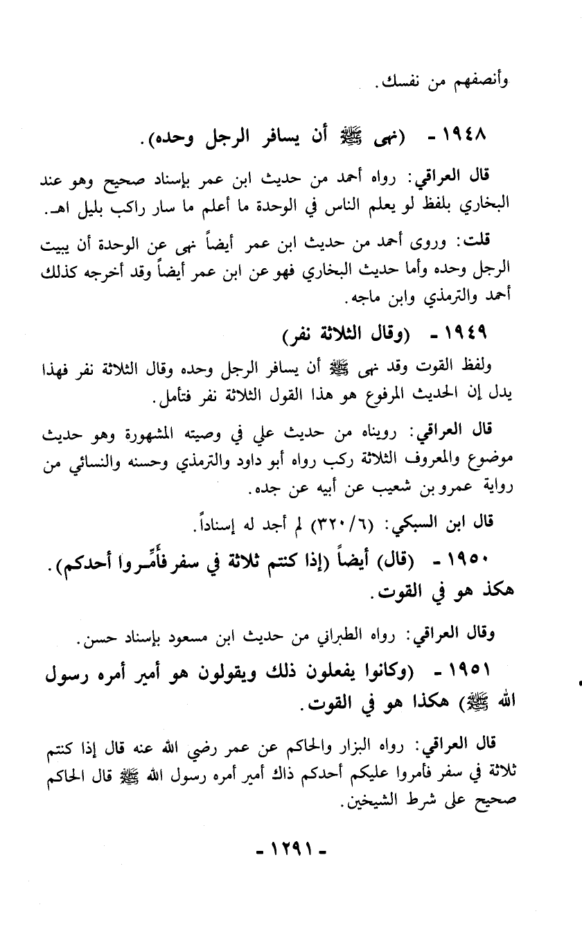 1948 - (نهى - صلّى الله عليه وسلم - أن يسافر الرجل وحده).