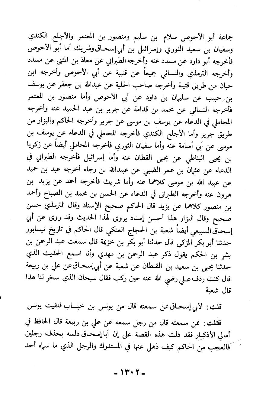 فقلت: ممن سمعته قال من رجل سمعه عن علي بن ربيعة قال الحافظ في أمالي الأذكار فقد دلت هذه القصة على إن أبا إسحاق دلسه بحذف رجلين فالعجب من الحاكم كيف ذهل عنها وفي المستدرك والرجل الذي ما سماه أحد