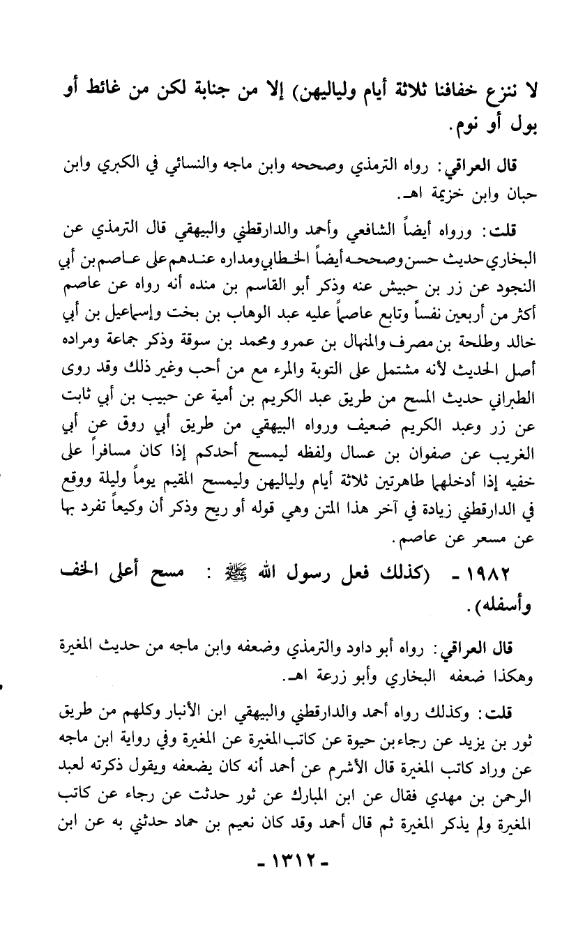 1982 - (كذلك فعل رسول الله - صلّى الله عليه وسلم -: مسح أعلى الخف وأسفله).