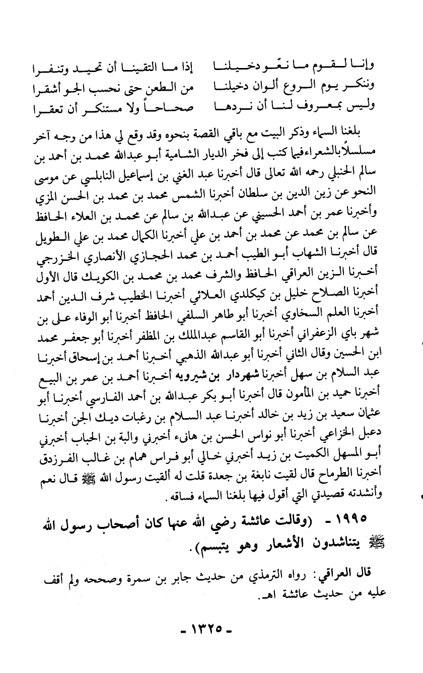 1995 - (وقالت عائشة رضي الله عنها كان أصحاب رسول الله - صلّى الله عليه وسلم -يتناشدون الأشعار وهو يتبسم).