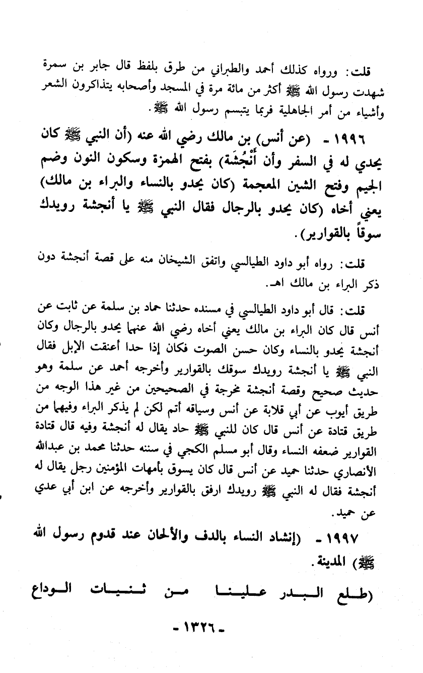 1997 - (إنشاد النساء بالدف والألحان عند قدوم رسول الله - صلّى الله عليه وسلم -) المدينة.