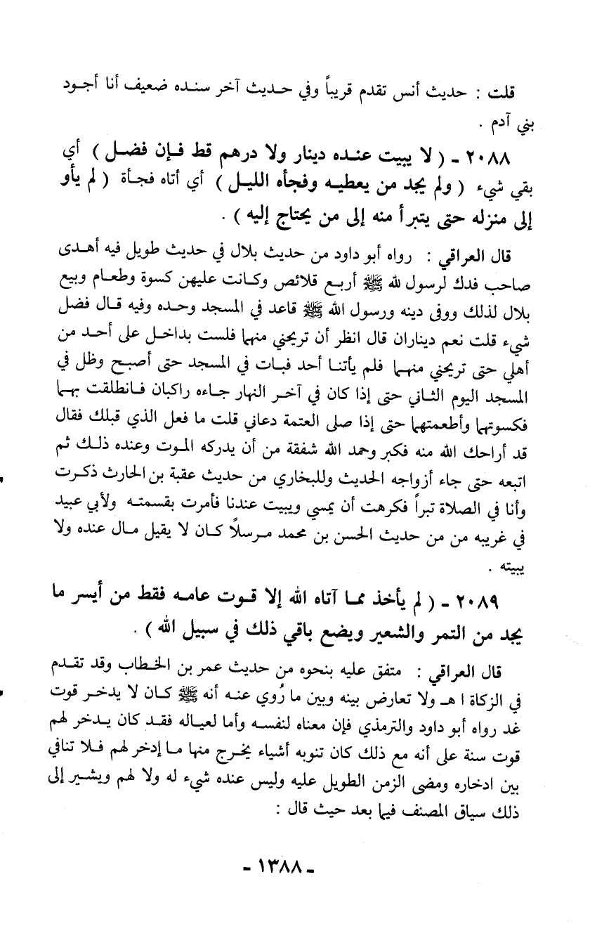 2089 - (لم يأخذ مما آتاه الله إلا قوت عامه فقط من أيسر ما يجد من التمر والشعير ويضع باقي ذلك في سبيل الله).