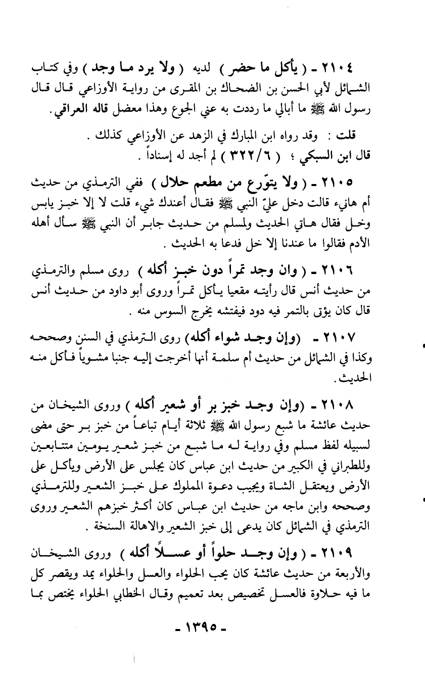 2104 - (يأكل ما حضر) لديه (ولا يرد ما وجد) وفي كتاب
