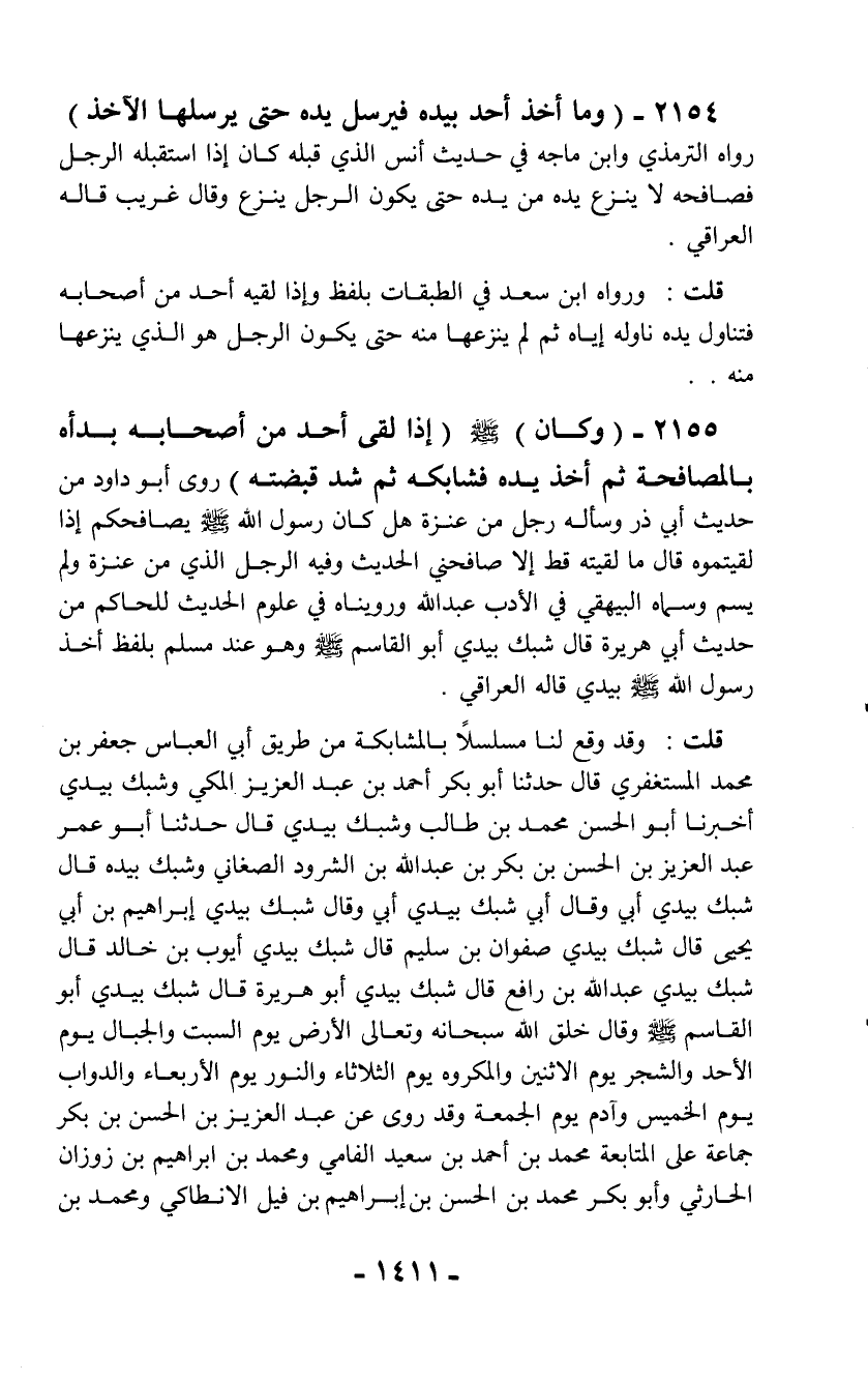 2154 - (وما أخذ أحد بيده فيرسل يده حتى يرسلها الآخذ)