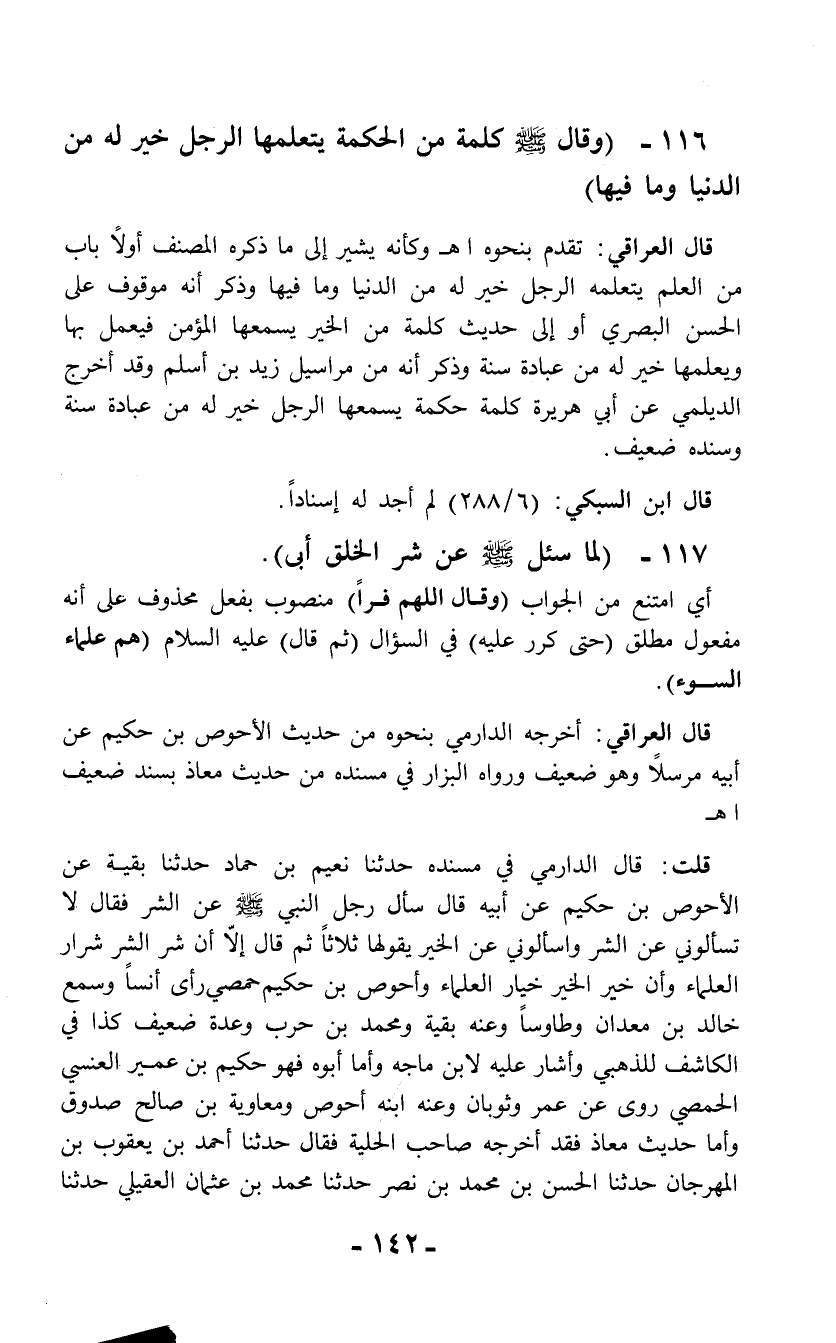 116 - (وقال - صلى الله عليه وسلم - كلمة من الحكمة يتعلمها الرجل خير له من الدنيا وما فيها)